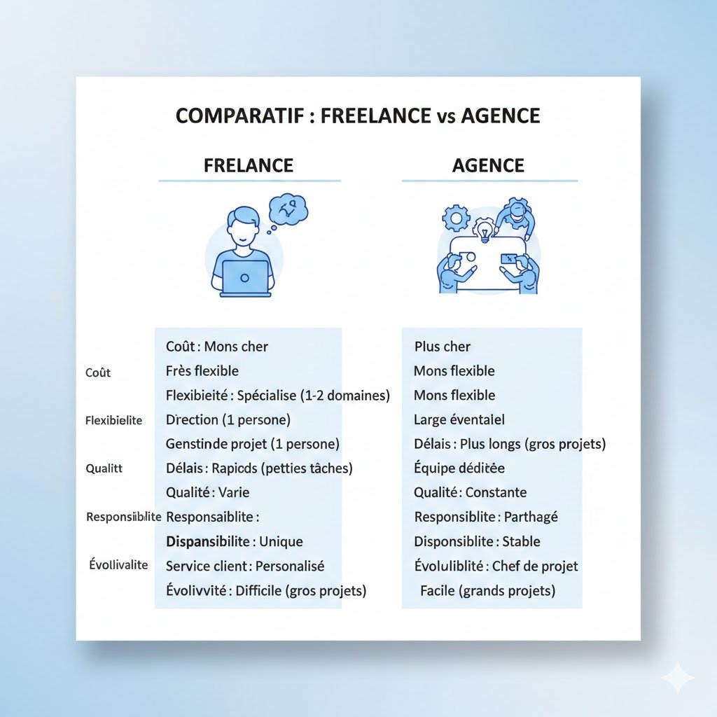 Comparatif Freelance vs Agence : tableau de décision